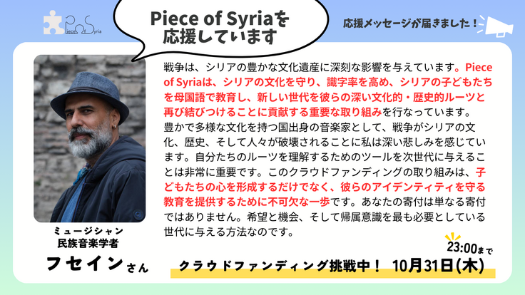 <応援メッセージ>フセイン ハッジさん(シリア人・ミュージシャン・民族音楽学者)