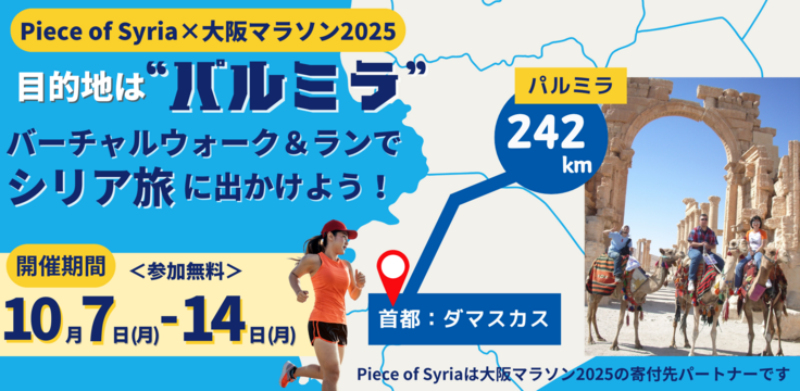 バーチャルラン&ウォーク】Piece of Syria×大阪マラソン2025 目的地は”パルミラ”!ウォーク&ランでシリア旅に出かけよう!