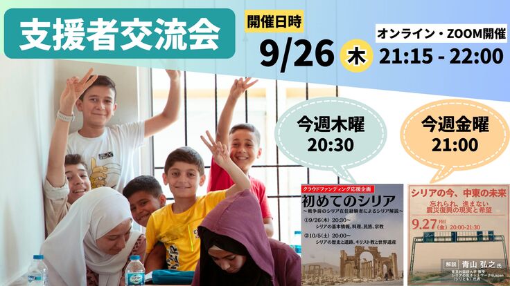 明日9/26(木)21:15〜支援者限定交流会を行います!(今週の木・金はシリアを知るイベント開催)
