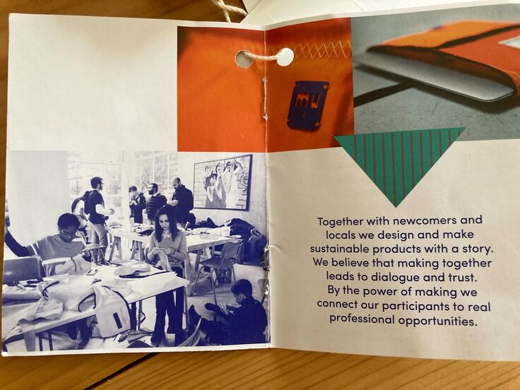 ”難民や移民が海を渡る際にライフベストを着用していることから、商品は新しい人生の旅の象徴となっています。生産者はオランダに逃れてきたシリア難民や移民たち。雇用されることで安定した収入が得られるだけでなく、様々な能力や新しい土地での人や人生とのつながりを得ることができています。商品を購入することで環境問題や難民・移民問題の解決につながります。”