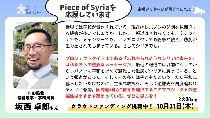 <応援メッセージ>坂西 卓郎さん(PHD協会 常務理事・事務局長)