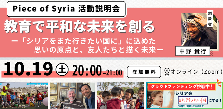 活動説明会|教育で平和なシリアの未来を創るー「シリアをまた行きたい国に」に込めた思いの原点と、友人たちと描く未来ー