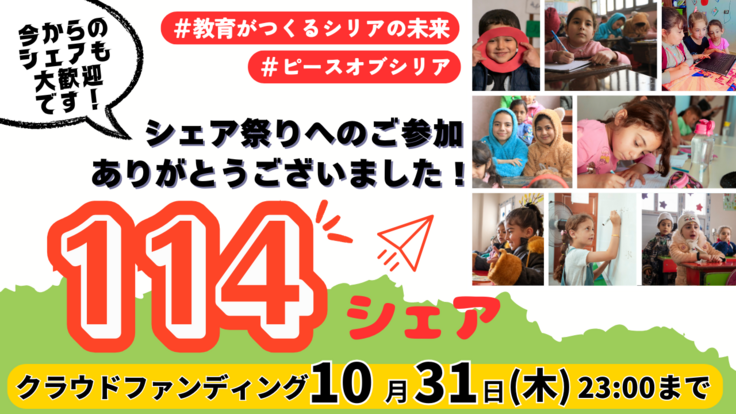 【シェア祭り終了報告】114 シェアありがとうございました!(クラファン終了間近です!)