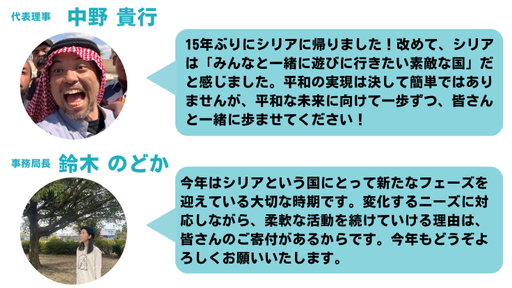 新たな一歩を踏み出したシリアを、皆さまと一緒に前へ