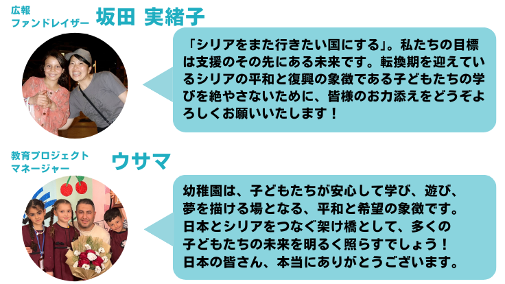 どうか、寄付を通じてこの挑戦に参加してください。一緒に子どもたちの未来、そしてシリアの平和な未来をつくっていきましょう!
