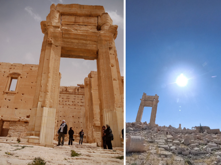 破壊されてしまったパルミラ遺跡のベル神殿のBefore(左)After(右)