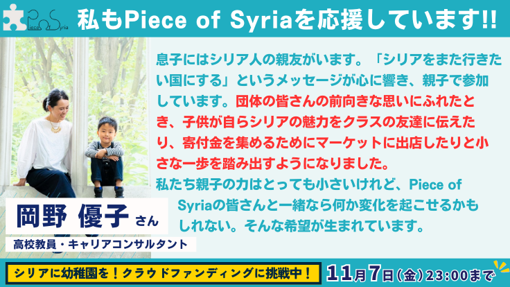 「シリアをまた行きたい国にする」というメッセージが心に響き、親子で参加しています。