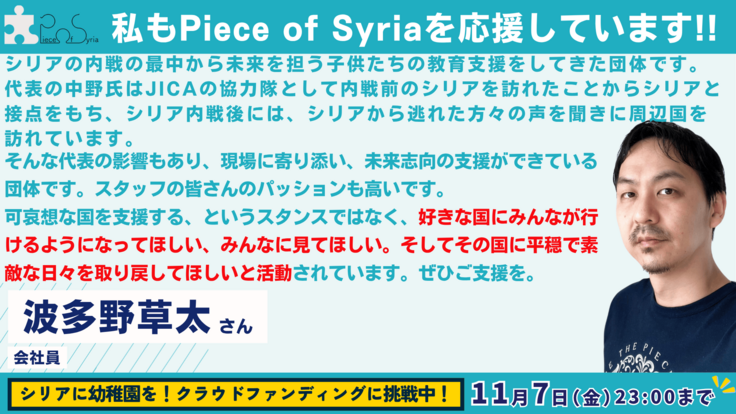 以前、記事でも、Piece of Syriaの想いや活動の本質を丁寧に言葉にしてくださり、本当に嬉しかったです。
