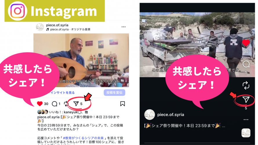 ② 19時にPiece of Syria公式SNSで投稿される記事を、シェアまたはリポスト!✈️