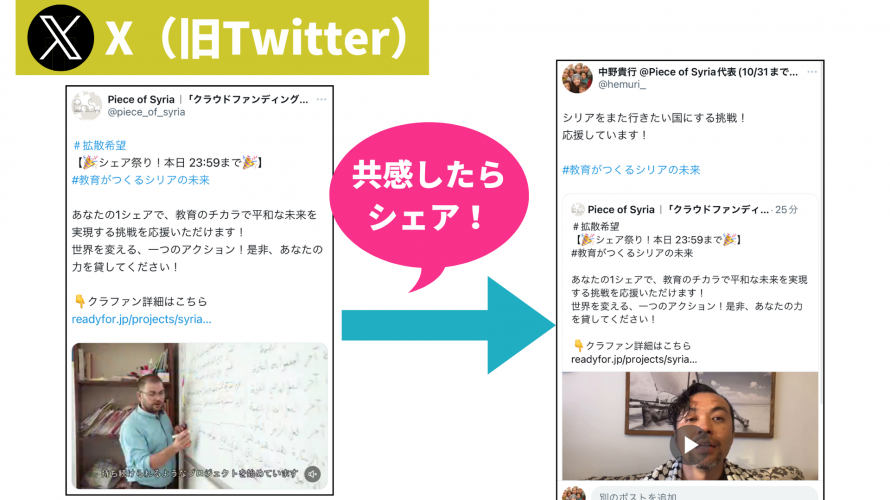 - ハッシュタグ:#ピースオブシリア #シリア再出発