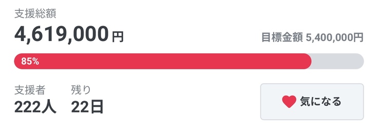 支援者 222人 残り 22日 !!