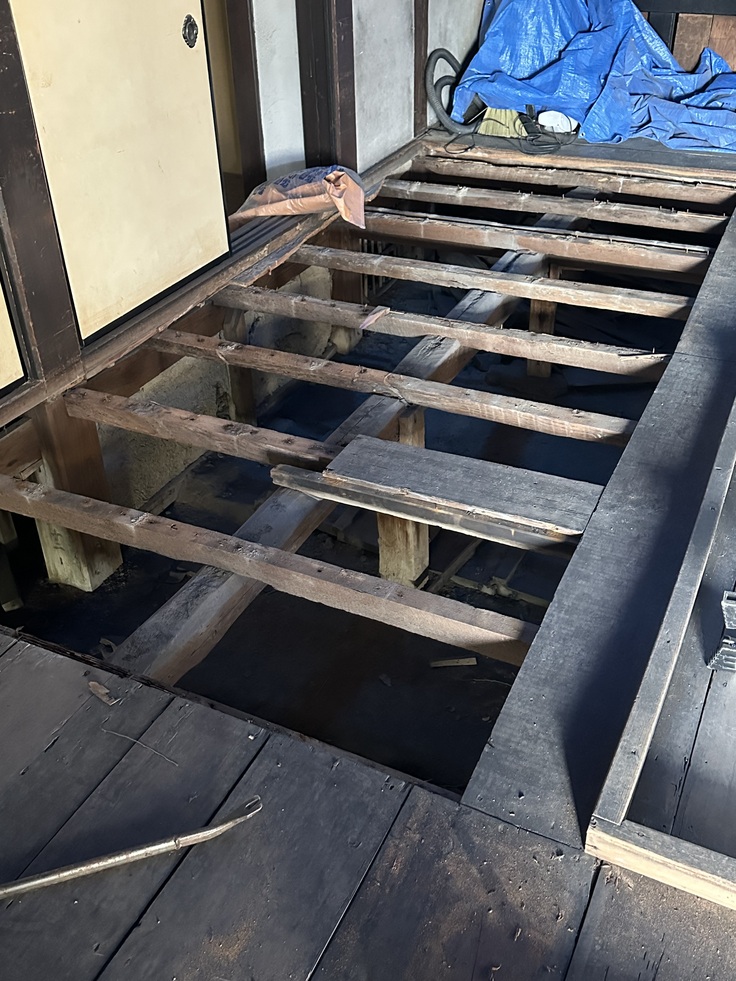 畳をあげて床板が剥がされていきます
