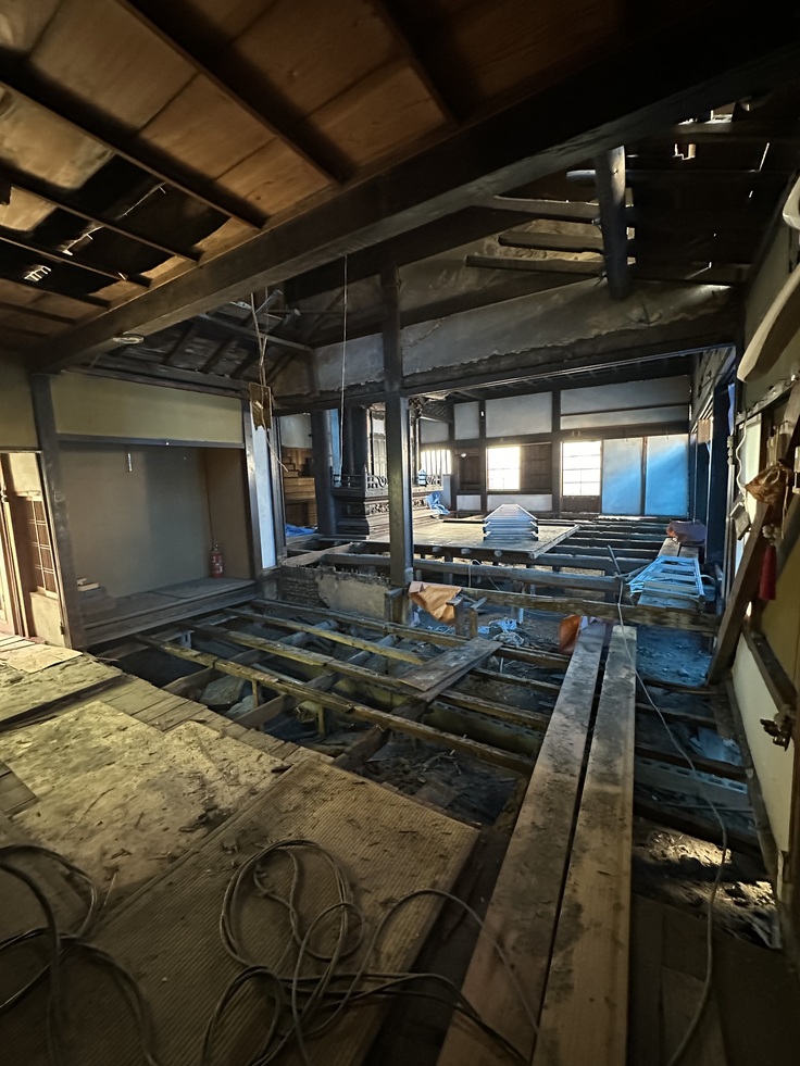 天井も剥がされ、複雑に組まれた木材が見えてまいりした。