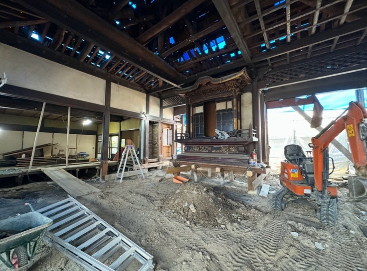 本堂の裏堂(本尊の阿弥陀如来さまがいらっしゃる本堂中央の須弥壇のそのまた奥・後ろ)の棚も壁も取り除かれ