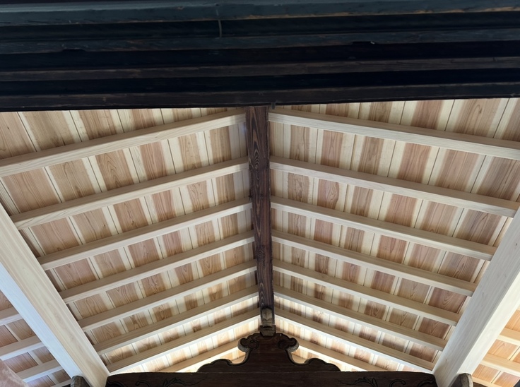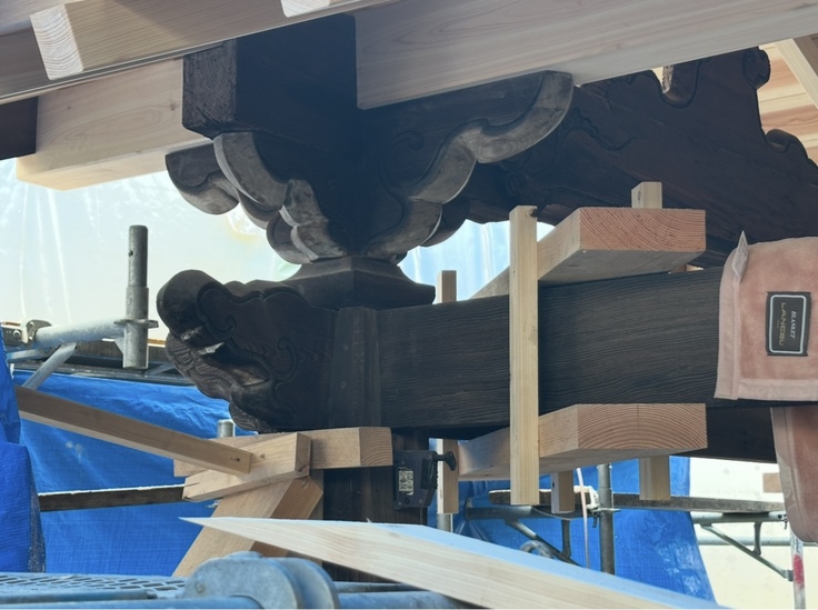 多くの木材によって四方八方よりガッチリと仮固定されております