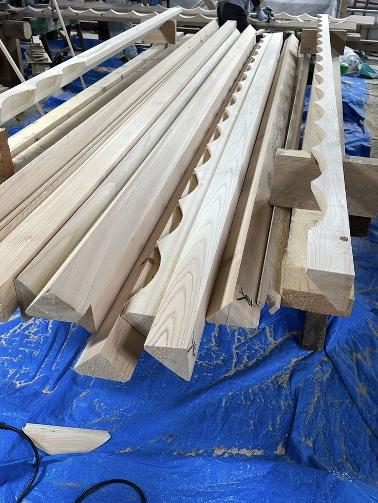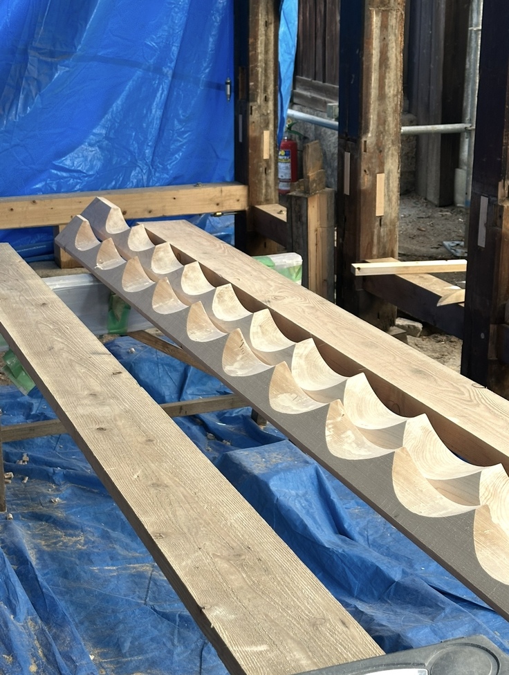 瓦を葺くにあたって『雀口(すずめぐち)』にピッタリとはまる木材の加工が始まりました