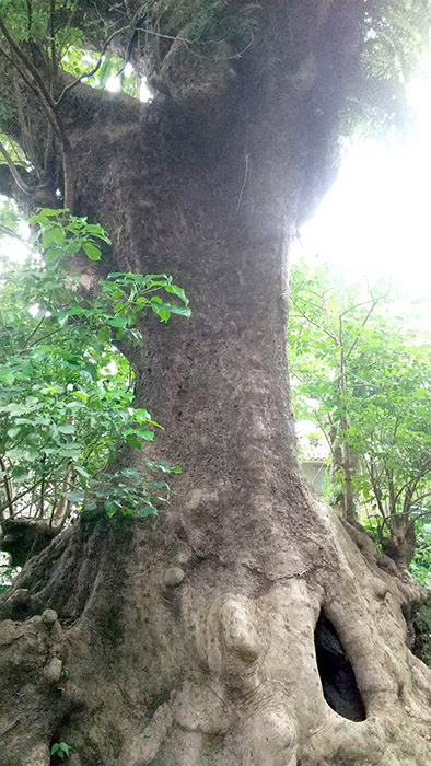 金城大樋川から歩いて2~3分の場所にある「内金城嶽(うちかなぐすくうたき)」は琉球王朝時代には、霊気がみなぎる森として王府の公式な信仰の場所でした。そんな霊気に守れたのか、戦禍を免れた樹齢300年と言われる大アカギが神々しくそびえています。 御嶽(うたき)とは聖域という意味で神々に祈る場所という事で、有名な御嶽には斎場御嶽(せーふぁうたき)があります。