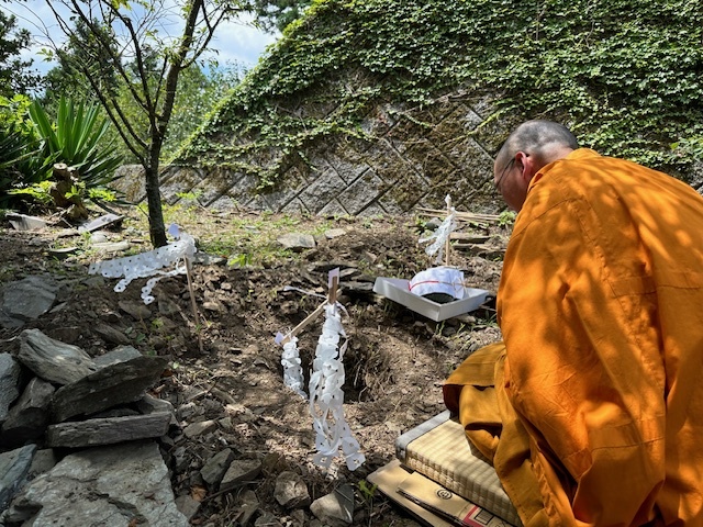 かぼちゃにボケ封じの書を詰め祈祷し、土の中に掘った穴に埋め、封じ込めました。
