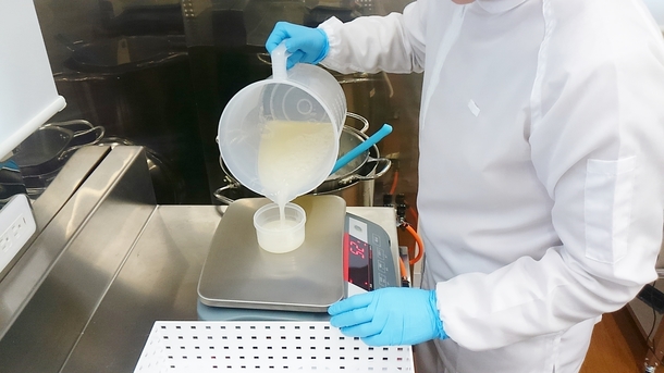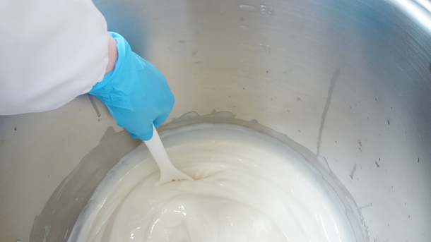 ・冷製法と釜炊き製法を組み合わせ、石鹸素地を作る
