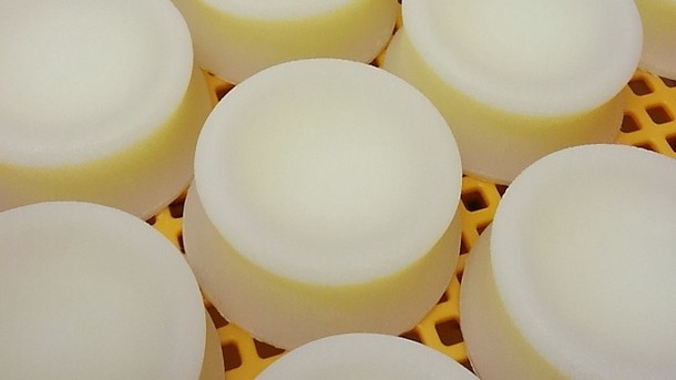 ゆっくり水分を蒸発させた石鹸はへこんだ形となりますが、時間をかけた分、美しい石鹸の結晶となり、雪のような泡を作りだします。