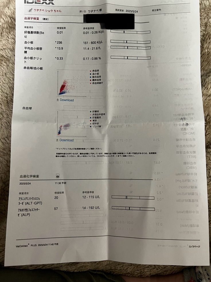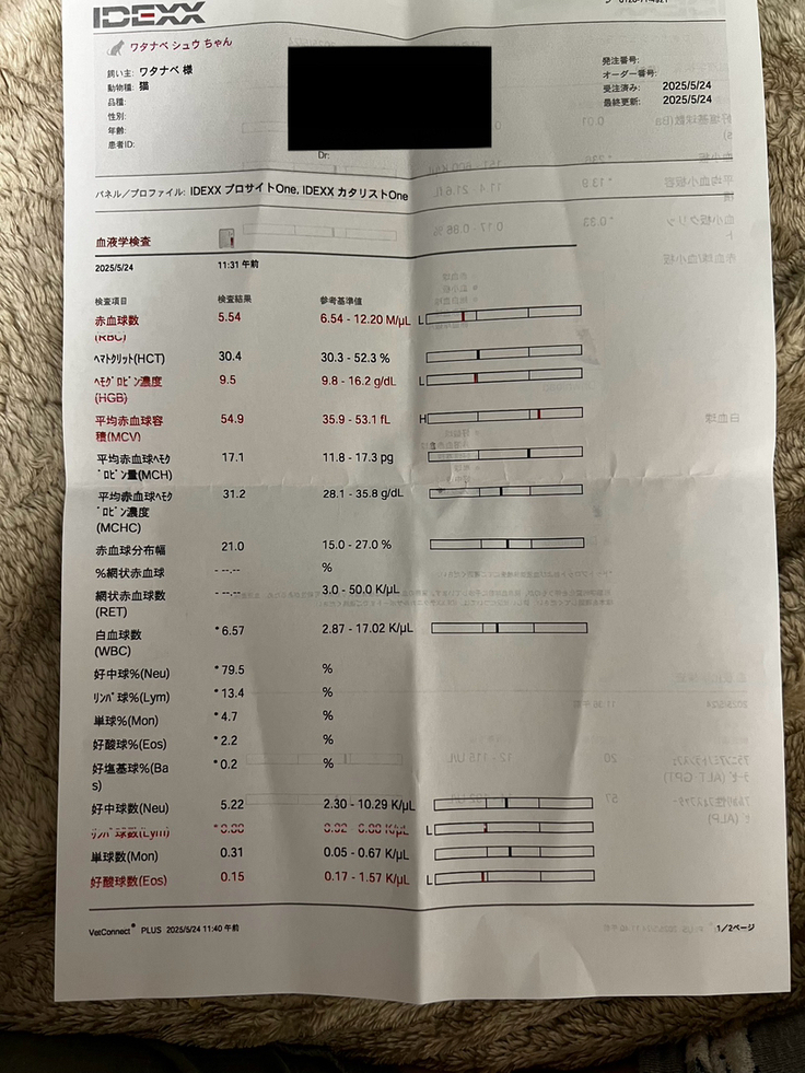 本日は血液検査を行ってきました。心臓の音とか大丈夫でfipの再発は今の所大丈夫そうです。