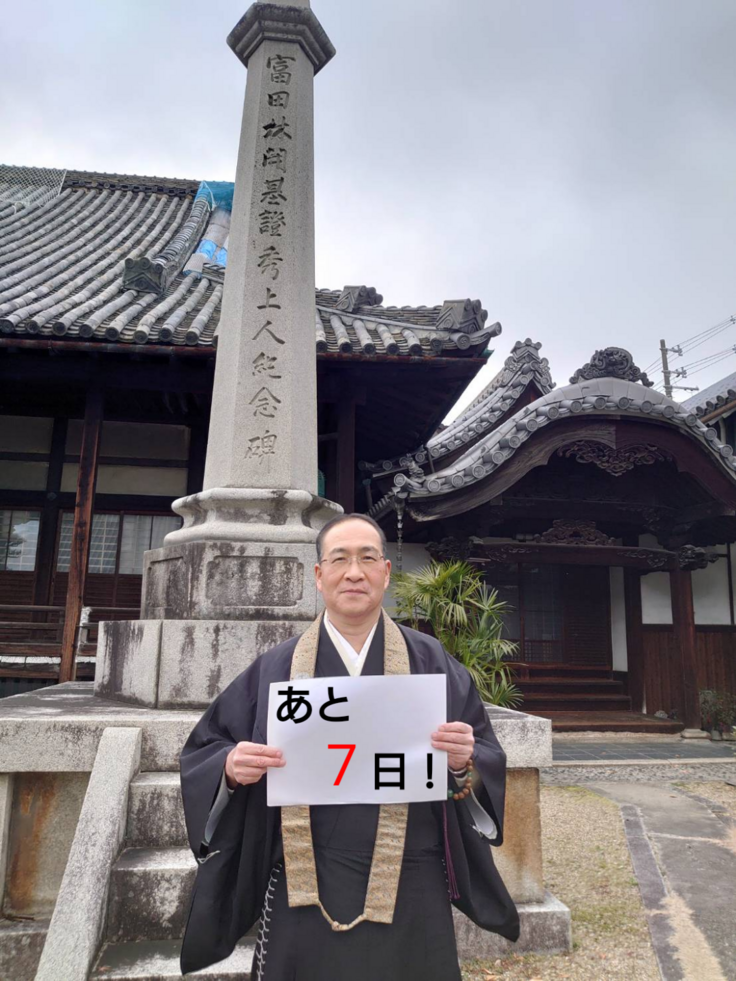 本日も輪番の登場です。境内の石碑の前で撮影しました。