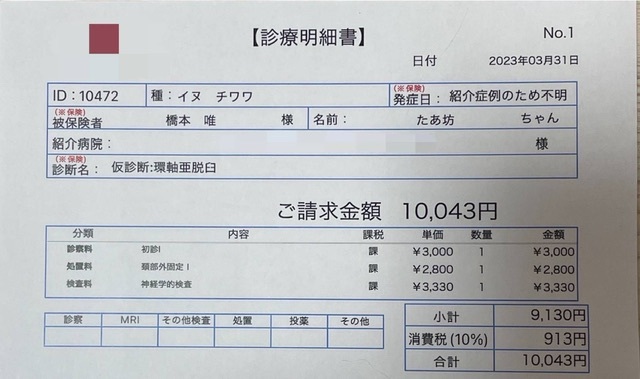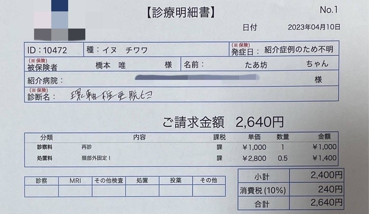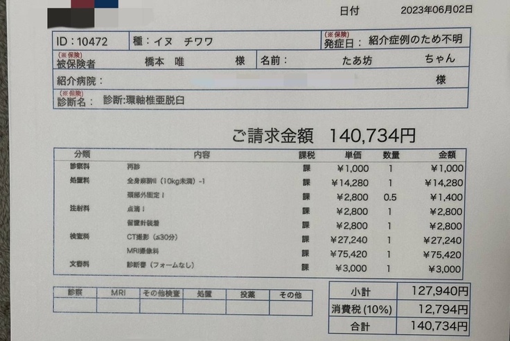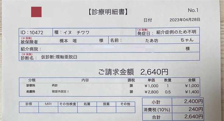 ページ上に掲載している診断書や診療明細書などの資料は全て動物病院から掲載の許諾を得ております。