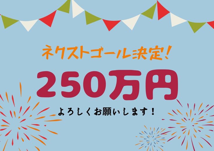 そこでたちは250万円を新たな目標、ネクストゴールに掲げることにいたします!