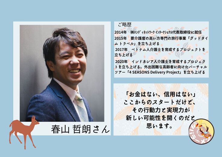 今回は株式会社ハンディネットワークインターナショナル 代表取締役 春山哲朗さんから頂いたメッセージを紹介いたします。