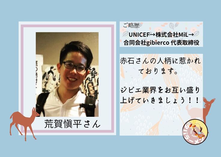 今回は合同会社gibierco 代表取締役荒賀愼平さんにいただいた応援メッセージを紹介いたします!