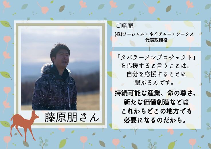 「タバラーメンプロジェクト」を応援すると言うことは、自分を応援することに繋がるんです。