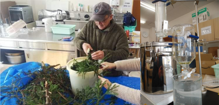 信濃町森林療法研究会によるアロマオイル抽出の作業