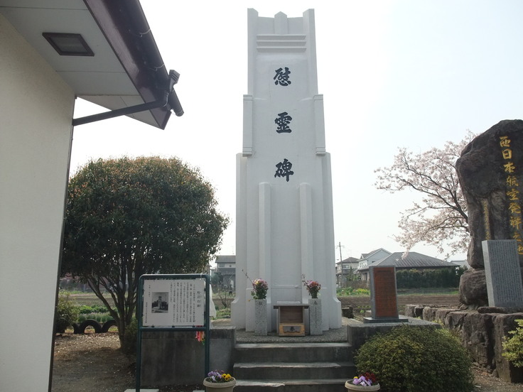 現存する戦争遺跡として飛行隊本部に設置されていた時計台があります。当時、この時計台の前では記念撮影が行われていました。現在は戦地や大刀洗空襲で亡くなられた方々の慰霊碑として残っています。