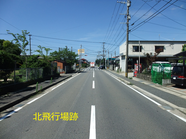 1945年2月、大刀洗飛行場から約6㎞離れた場所に北飛行場が完成しました。北飛行場は重爆撃機用に作られたコンクリート製滑走路で、幅50m、長さ1800mありました。1945年5月25日には、北飛行場から重爆撃機、飛龍を改造したさくら弾機など4機が沖縄へ特攻出撃しました。現在、当時の面影はほとんど残っていませんが、道路として使われています。