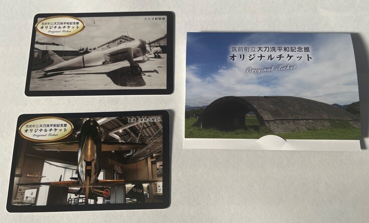 掩体壕がデザインされたオリジナルチケットホルダーの中には、「震電」・「九七式戦闘機」がデザインされたチケットが各1枚、合計2枚入っています。