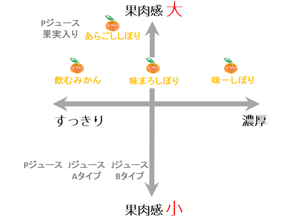 早和果樹園主力ブランドのポジショニングマップと各ブランドの出現率