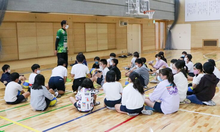 市内小中学校へ赴き出張授業や競技始動をしています。