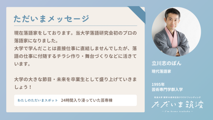現代落語家の立川志のぽんさんより皆さんへ「ただいま」メッセージ