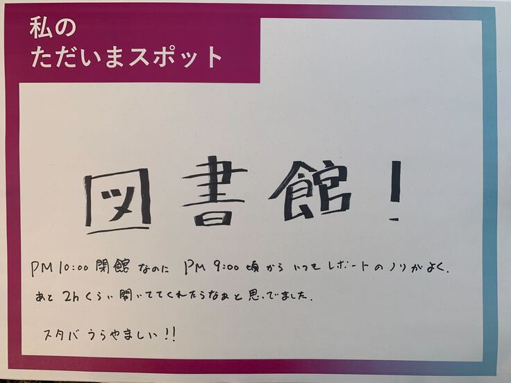 大学生の本分、勉強した場所を挙げた方も多かったです。さすが、筑波大生!