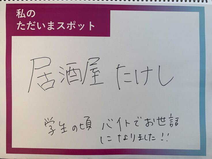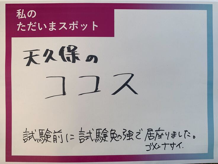 さて、そんなホームカミングデーでも、たくさんの卒業生の皆さまに「私のただいまスポット」を教えていただきました!