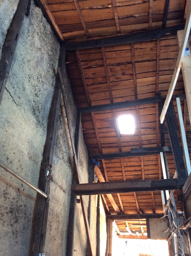壁は木造の古民家にしばしば見られる土壁です。