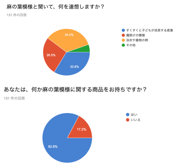 先日お願いした「麻の葉模様」に関するアンケート、151名の方にお答えいただきました。ご協力本当にありがとうございました。