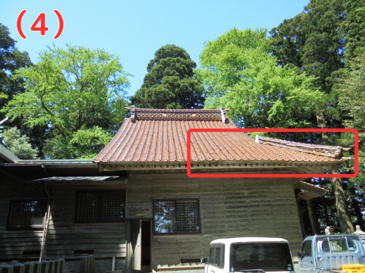 (3)向拝の屋根の葺き替えを行います。また、捨て谷(屋根の表面からは見えないよう作られた集水加工された部分)も取り替えます。