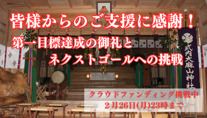 このたびは、「由緒ある古社を次代につなぎたい」大麻山神社修繕プロジェクトのクラウドファンディングに皆様からの温かいご支援と応援をいただき、誠にありがとうございます。