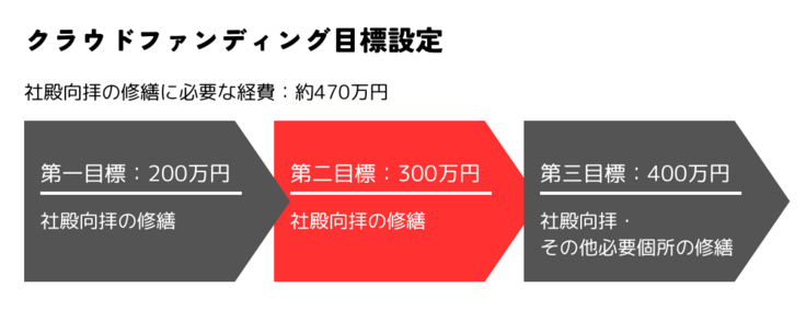 プロジェクト本文にも書かせていただきましたが、向拝修繕に必要な経費は約470万円、式年大祭を含めた総事業費は約700万円を計画しています。