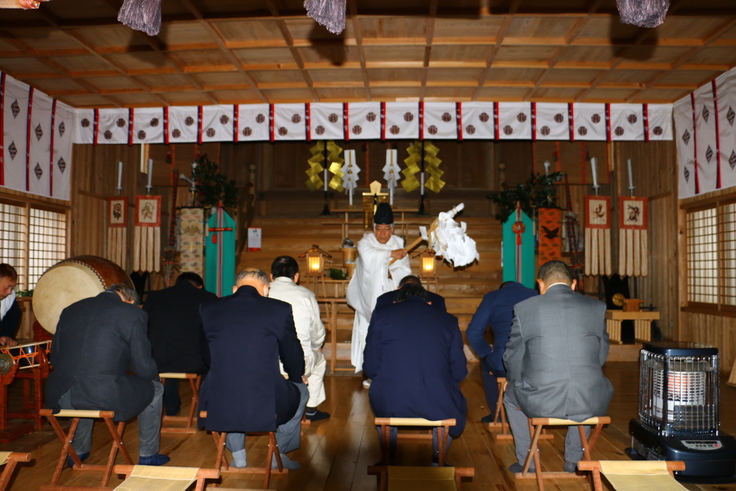 前日からの雪でとても寒い中ではありましたが、実行委員長をはじめ各部会長に、この度工事をお願いする㈱第一ホーム様の参列の中、無事に祈願が行われました。