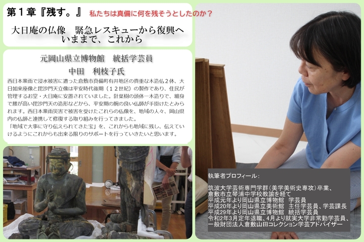 文化財の災害による消失は、その地域の歴史・信仰・文化の消失を招く大きな要因となります。にもかかわらず年々少なくなる地域の仏師。加えて、ご自身も被災した地域の方と協同していかに仏像の修復、お堂の再建にあたるのか?