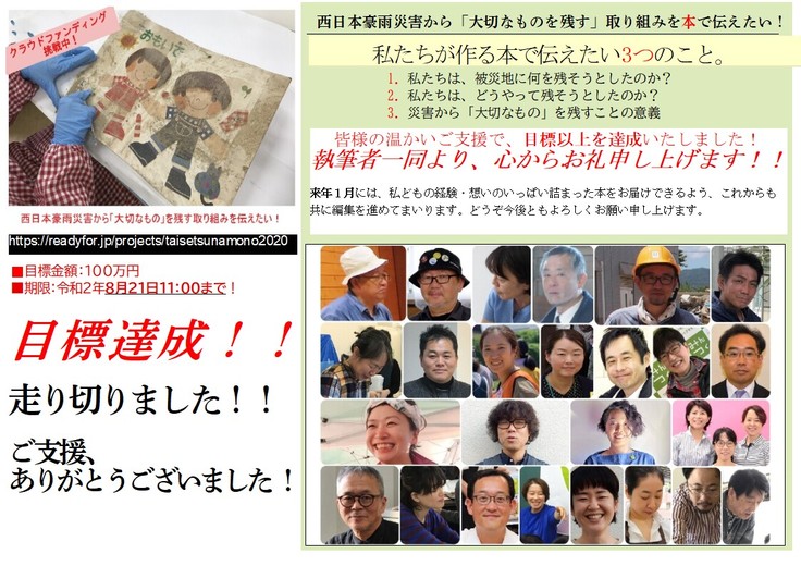 まずは、執筆者一同、クラウドファンディング実行チームである「西日本豪雨災害『大切なもの』無償応急処置出来る事を出来るだけチーム一同より心からお礼申し上げます!!