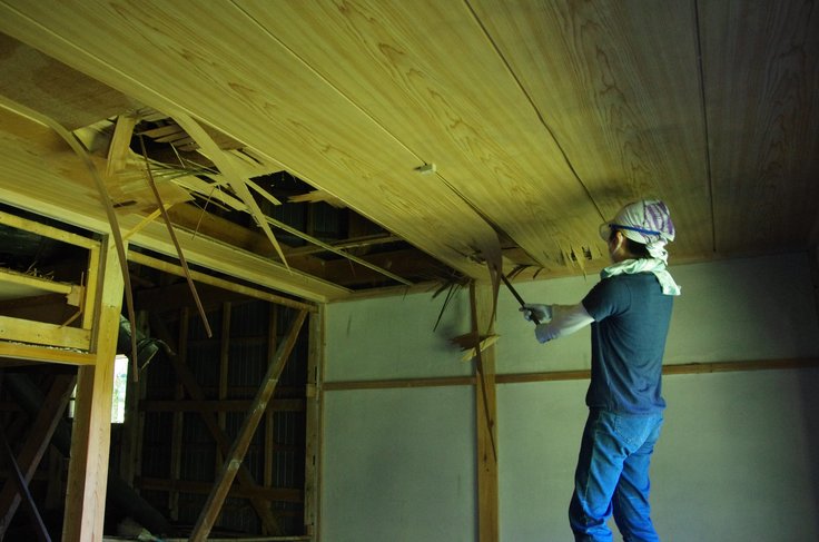 壁や天井、床を取り払って、少しずつ昔の姿に戻っていく過程は大勢でやれば1か月、もしかしたら1週間とかからず終わるのかもしれませんが、家族でゆっくり、この家の「借時間」を楽しみながら、味わいながらの作業はとても良い時間でした。といっても、まだまだ解体作業は続きます。