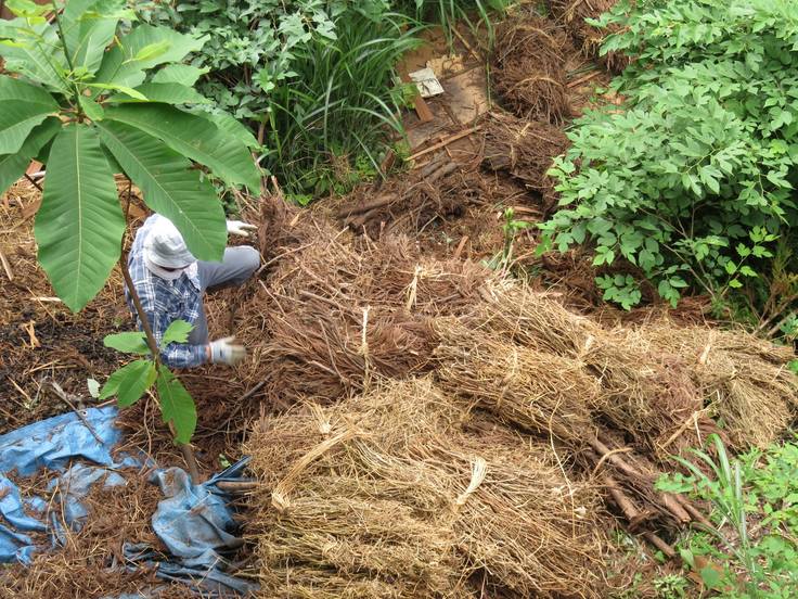 窓から外に放り出すのも一苦労、そして藁をたい肥にするため畑やこの敷地内に移動するのも一苦労、、、、でも、体を動かし、いい汗をかかせてもらいました。